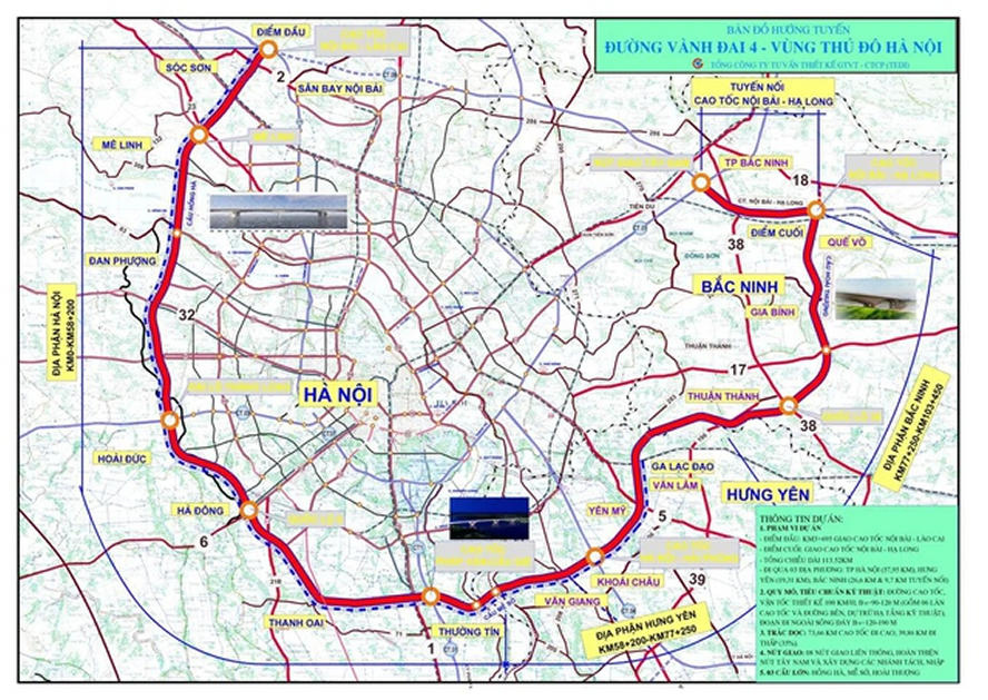 Dự án đường Vành đai 4 – Vùng Thủ đô có tổng mức đầu tư gần 86.000 tỷ đồng , đi qua 3 tỉnh/thành phố: Hà Nội, Bắc Ninh và Hưng Yên. Trong đó đoạn đi qua Hà Nội là 56,5km, Hưng Yên là 20,3km, Bắc Ninh là 21,2km.